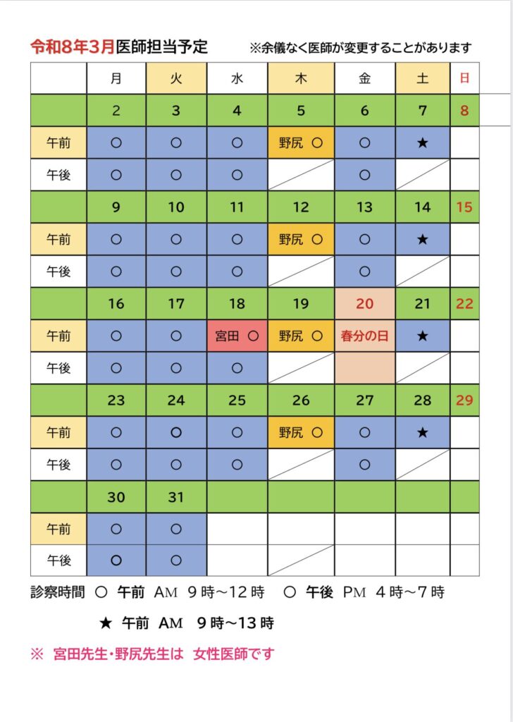 令和8年3月医師担当予定表
